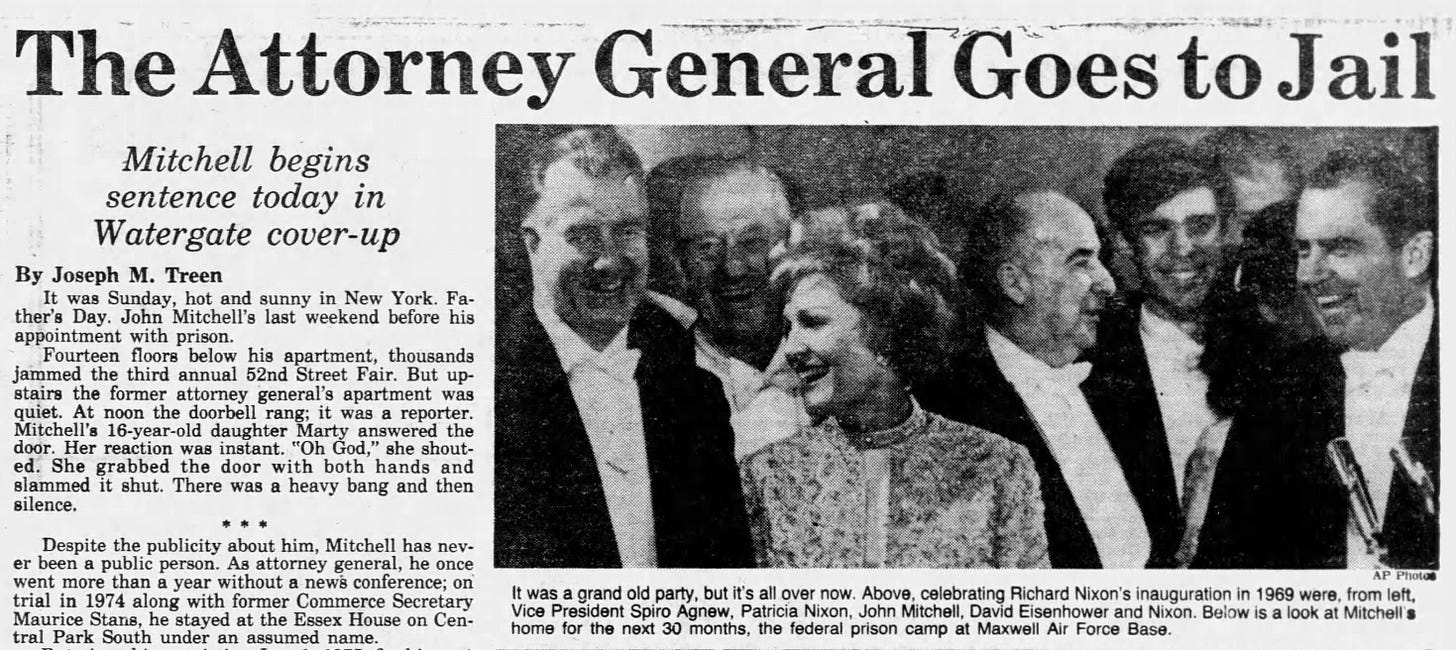 Or maybe the lying to Congress moments put Noem in John Mitchell territory. Mitchell went to jail in 1977.