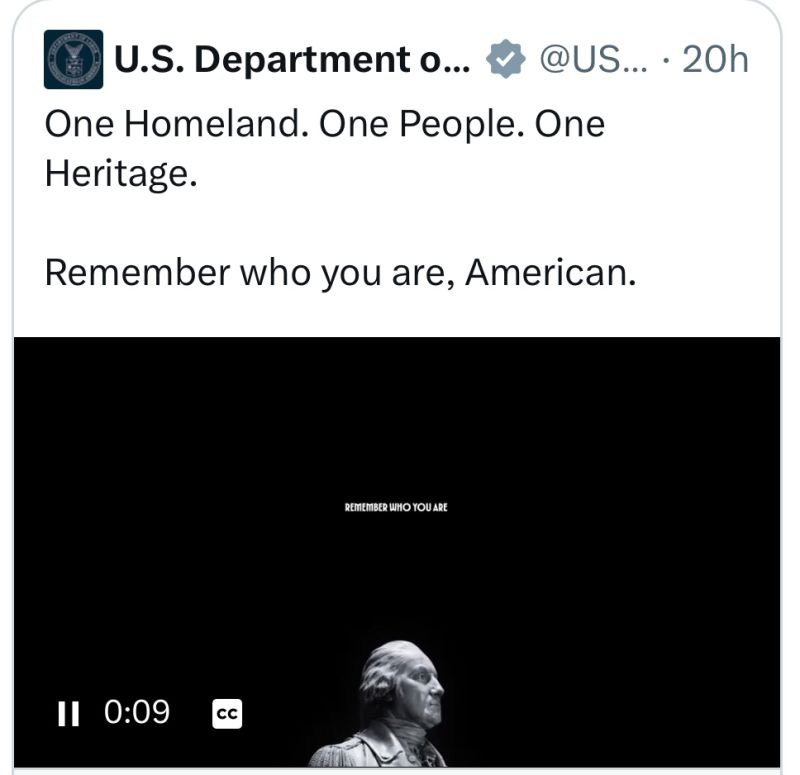 In recent weeks, many posts have highlighted DHS’s push to hire more Immigration and Customs Enforcement agents, as well as the agency’s vision of the homeland. They range from World War II-style recruitment posters to artwork evoking nostalgic versions of America’s past, such as an 1872 painting that positively depicts white settlers displacing Native Americans.